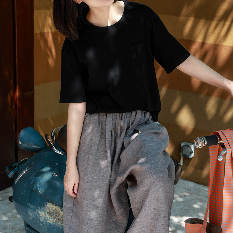 滋原创夏棉麻简约黑色短袖圆领直筒文艺原创设计纯色T恤能量满满热门设计联盟服务商