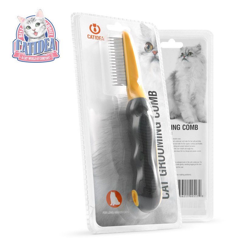 米豆娃娃 猫乐适CG7长毛梳猫美毛梳猫狗密齿梳带柄跳蚤梳脱毛梳热门设计联盟服务商