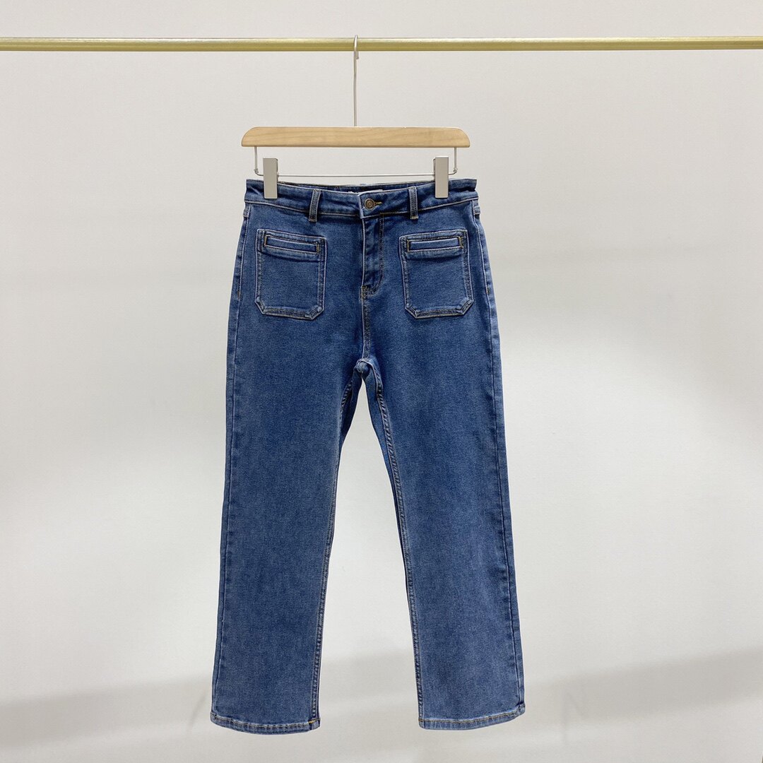 仿佛开了瘦腿特效大力微喇九分深蓝水洗牛仔裤秋季新款050409热门设计联盟服务商