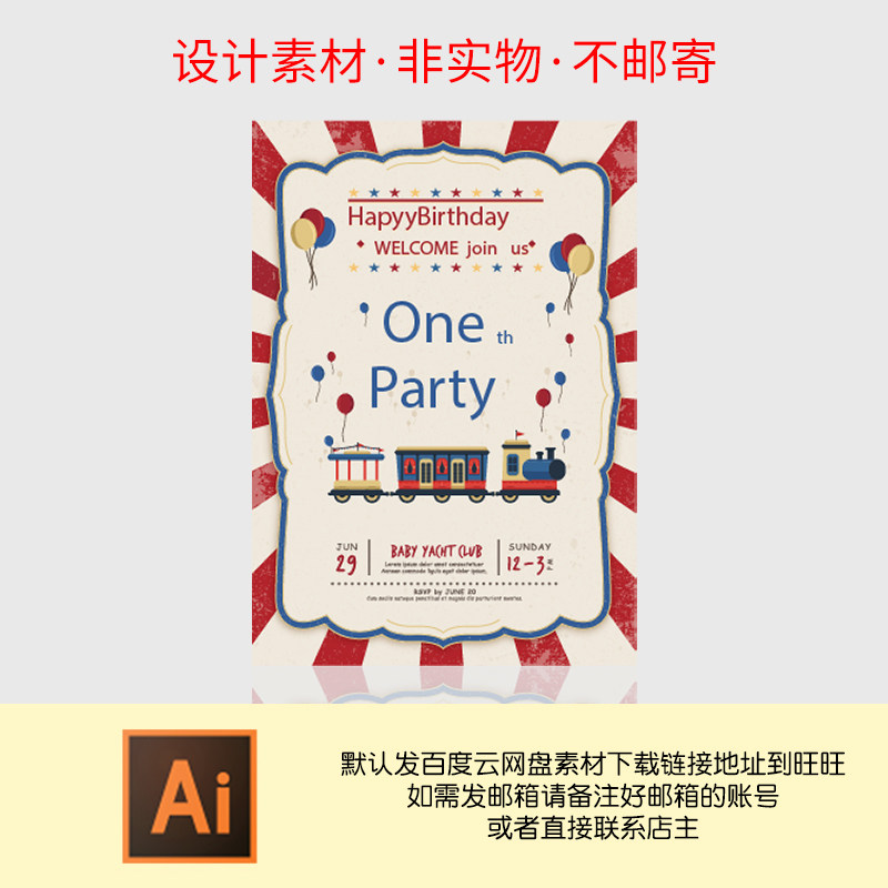 卡通小火车红色迎宾牌宝宝百天宴周岁生日派对水牌AI分层设计素材热门设计联盟服务商
