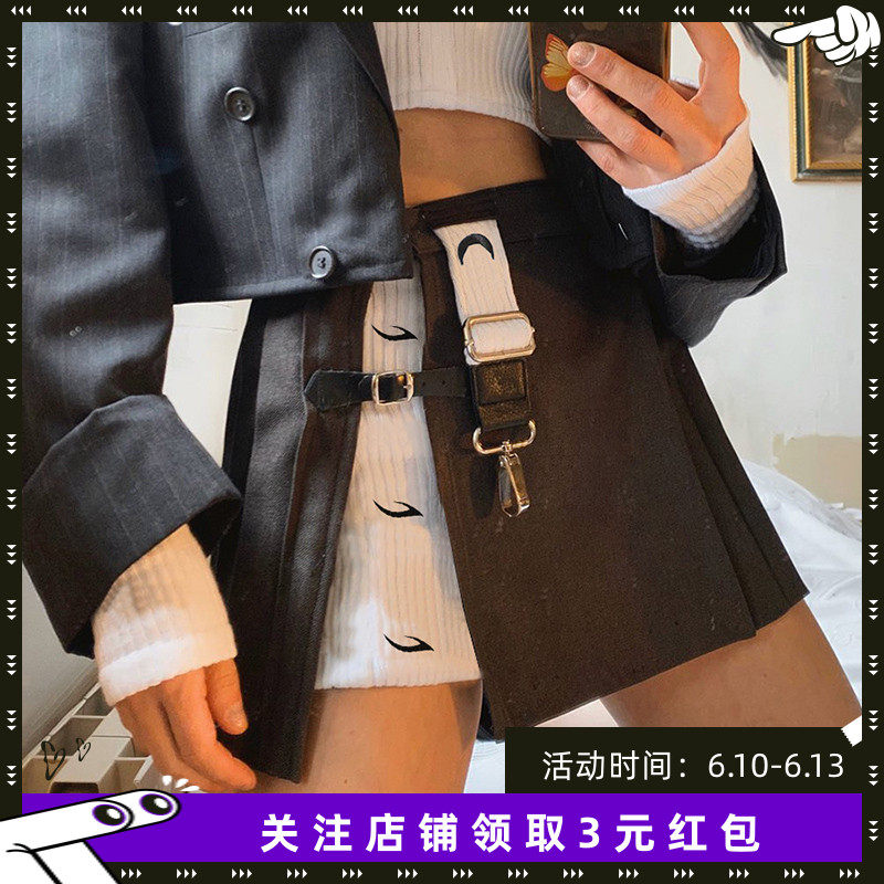 潮酷ins拼接设计不规则小众个性黑色显瘦高腰开叉半身裙短裙春夏热门设计联盟服务商