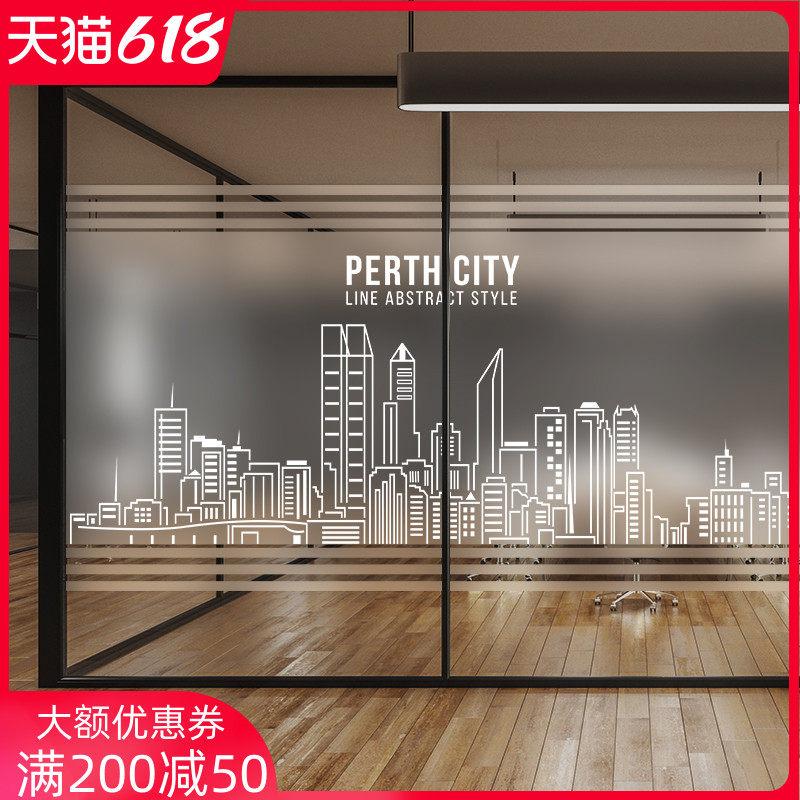 办公室公司透光不透明玻璃贴膜贴纸个性城市建筑背胶免胶静电时尚热门设计联盟服务商