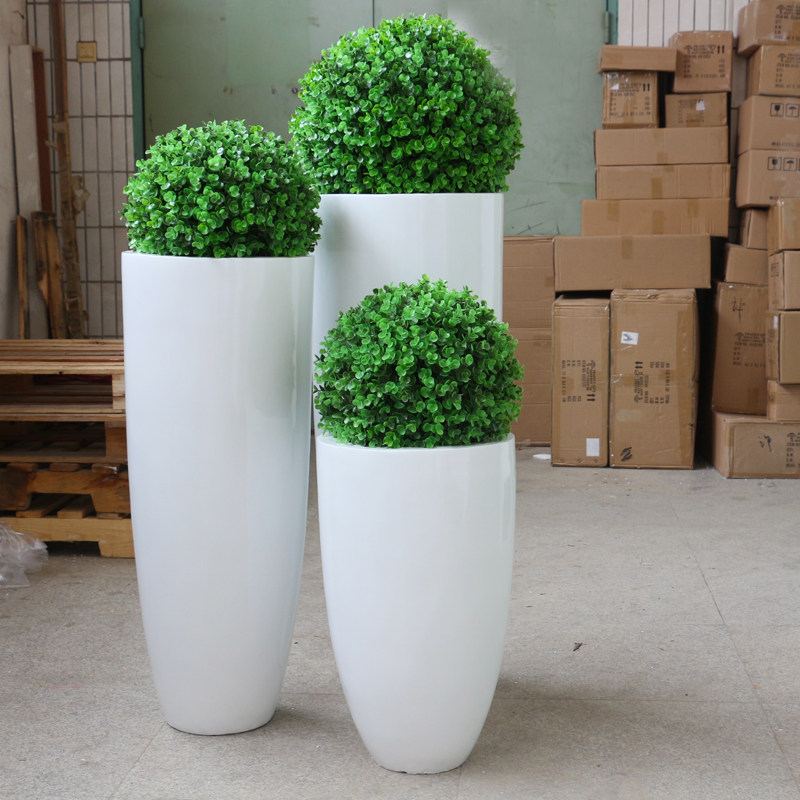 。白色圆斗子头落地大花瓶花器花盆摆件 客厅酒店商场售楼处软热门设计联盟服务商