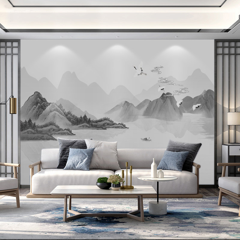 新中式壁布水墨山水墙纸电视背景墙壁纸客厅壁画卧室墙纸影视墙布热门设计联盟服务商