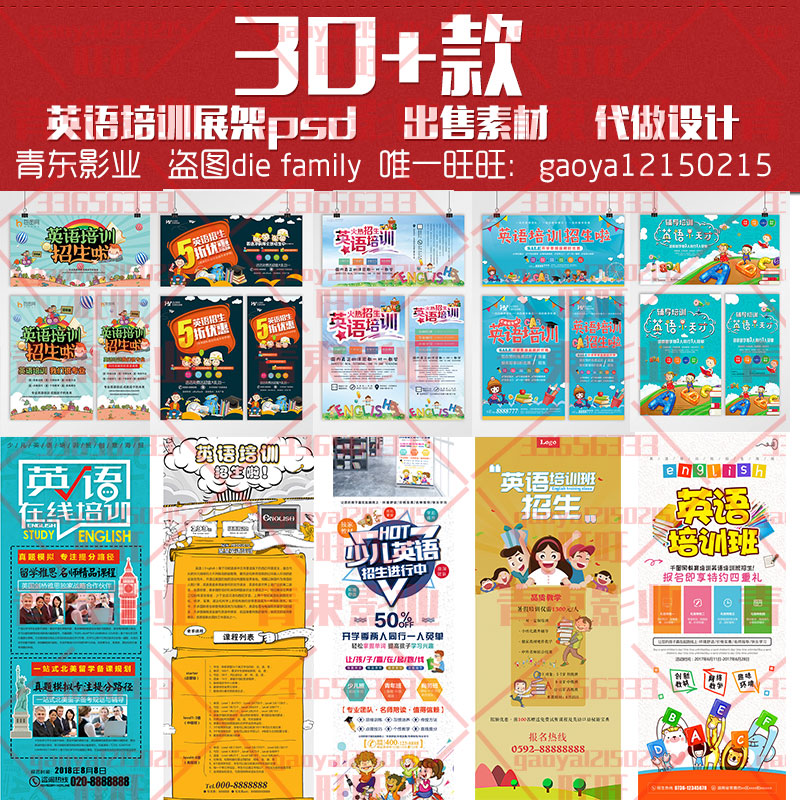 少儿学校英语外语培训辅导班招生宣传x展架易拉宝设计psd素材模板热门设计联盟服务商