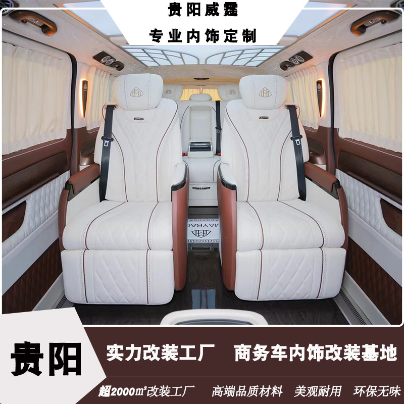 贵阳商务车内饰翻新改装定u制威霆V260航空座椅地板扶手冰箱窗帘热门设计联盟服务商