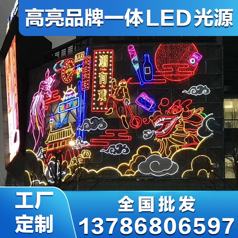 幕墙LED装饰画商业广场天幕灯光亮化商场挂网灯饰通道夜画彩虹画热门设计联盟服务商