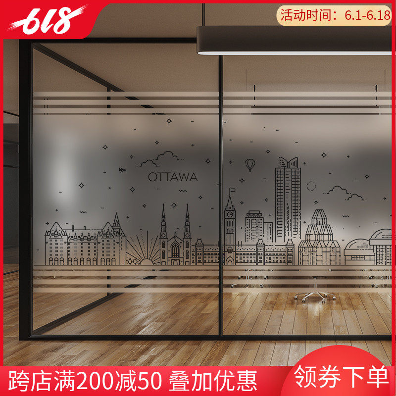 办公室定制玻璃贴纸磨砂静电贴膜UV打印窗户玻璃门装饰 城市建筑热门设计联盟服务商