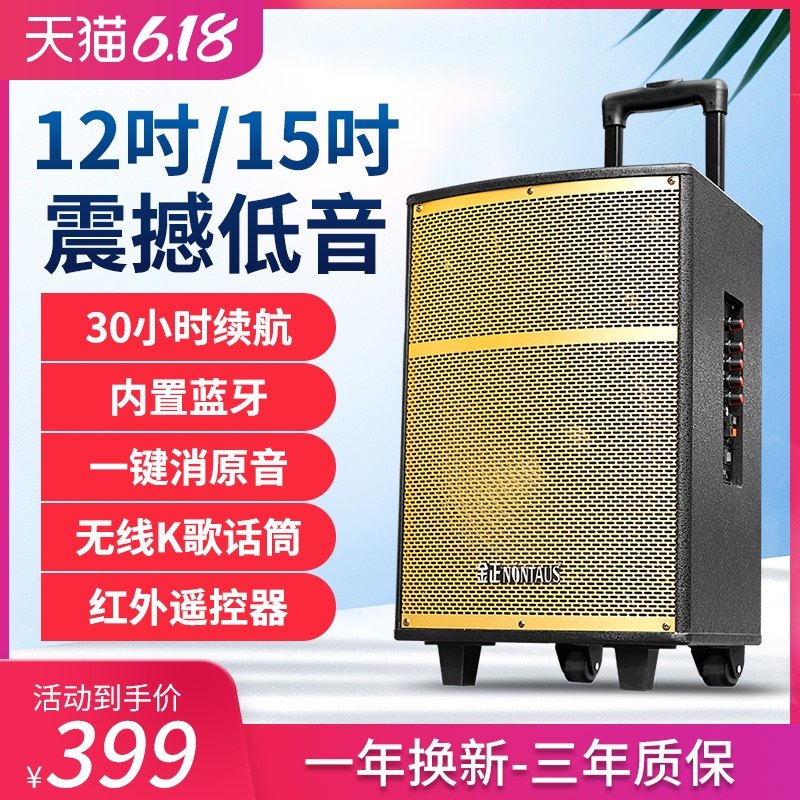 金正广场舞音响户外蓝牙重低音炮k歌12/15寸大功率无线充电麦克风插卡室外跳舞手提拉杆音箱直播便携式喇叭热门设计联盟服务商