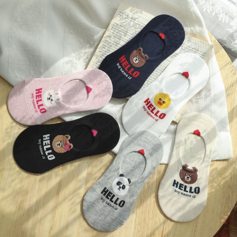 韩国东大门进口女生船袜纯棉袜子春夏季短袜卡通动物爱心防滑硅胶热门设计联盟服务商