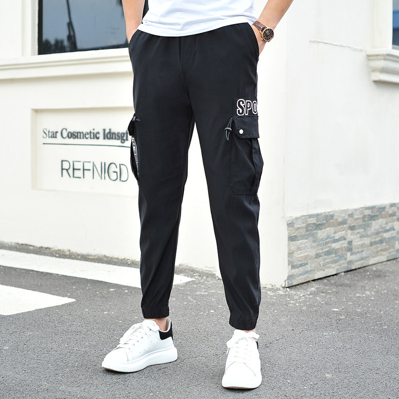工装裤男薄款多口袋束脚哈伦裤子男潮流束脚透气超火男潮个性热门设计联盟服务商