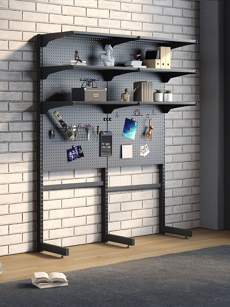 盛京洞洞板免打孔置物架收纳架落地书架立式展柜电脑桌架子展示架热门设计联盟服务商