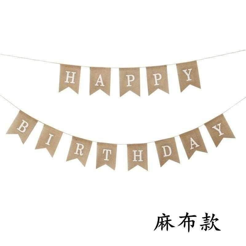 麻布拉挂旗生日快乐字母成人儿童男女孩宝宝生日派对装饰横幅吊旗热门设计联盟服务商