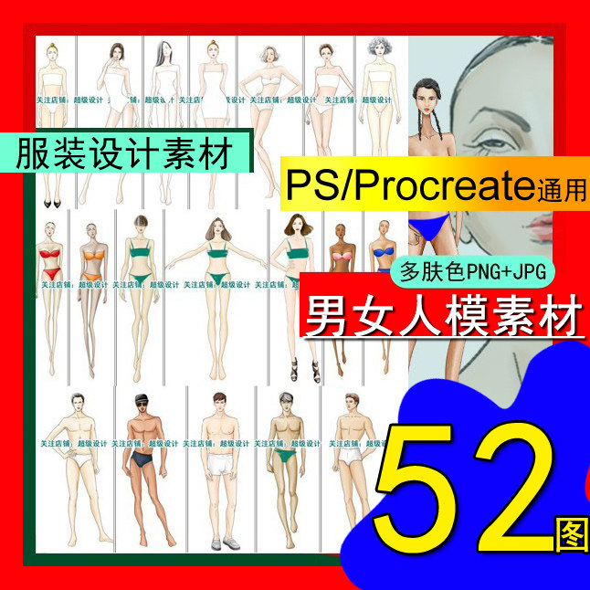 52图男女模特人体免抠PS笔刷素材设计礼服职业装效果正面款手绘画热门设计联盟服务商