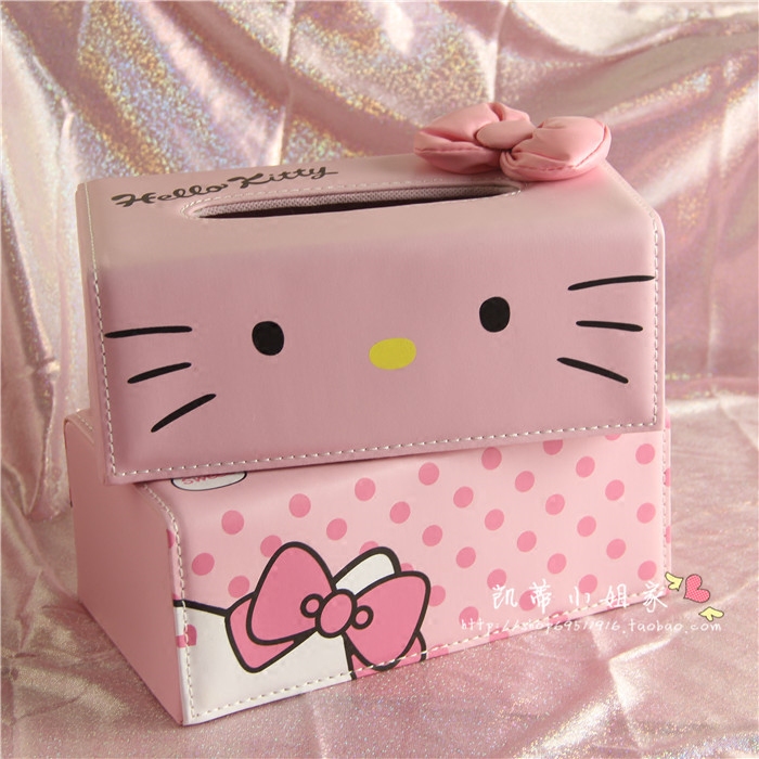 可爱卡通KT猫咪蝴蝶结纸巾盒纸抽盒长纸巾收纳盒PU皮革创意收纳盒热门设计联盟服务商
