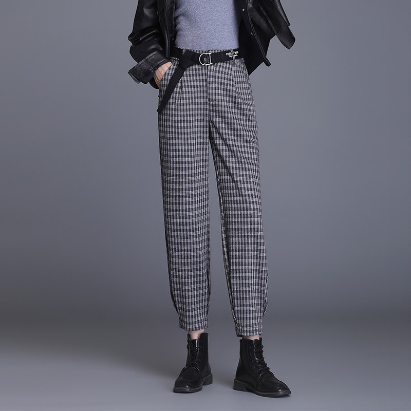 格纹哈伦裤2021秋冬款裤女显瘦宽松束脚灯笼式休闲毛呢裤子热门设计联盟服务商